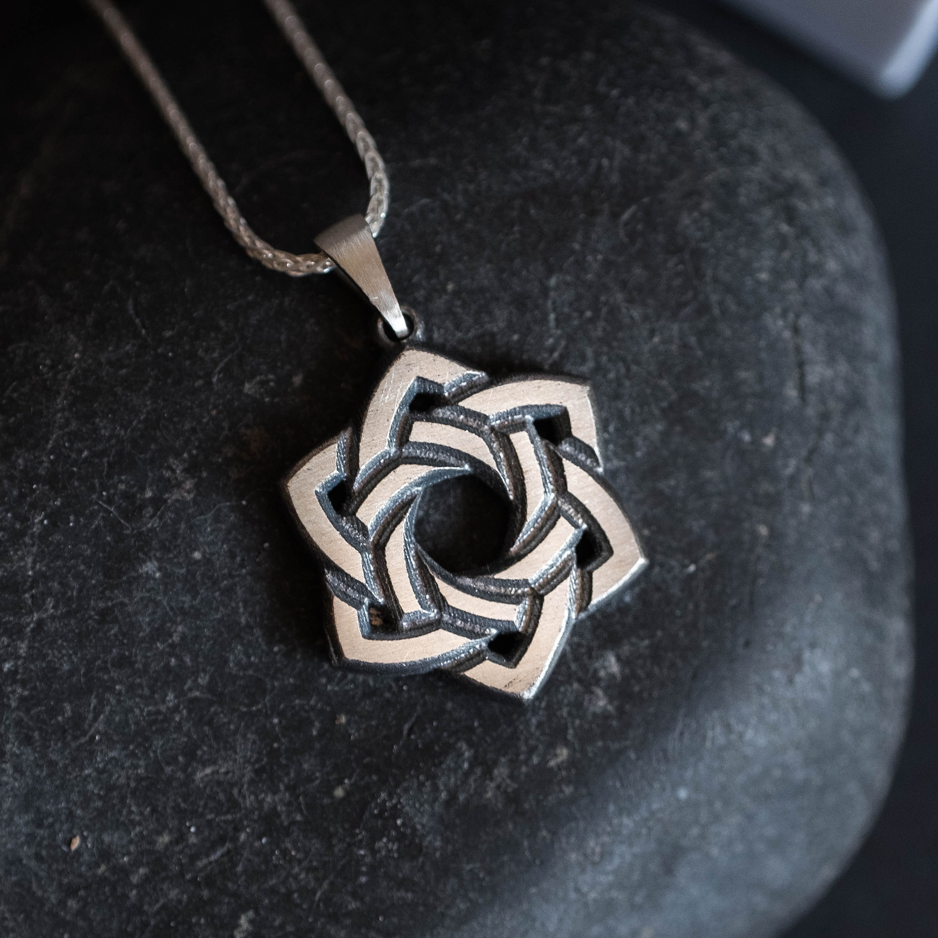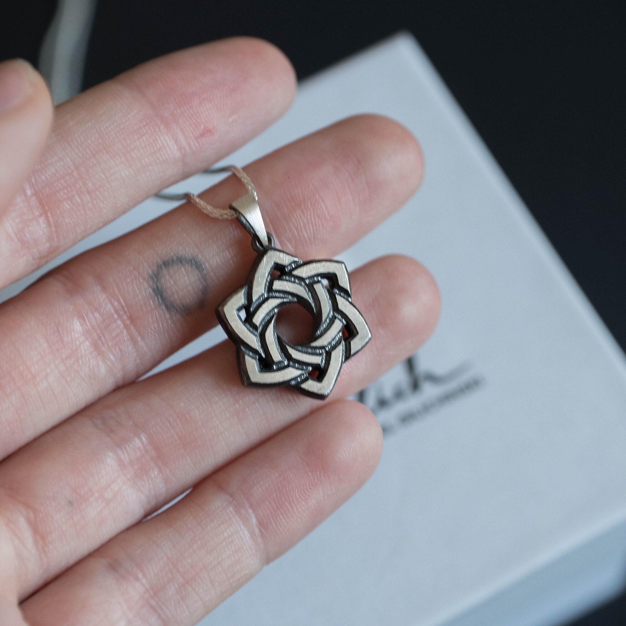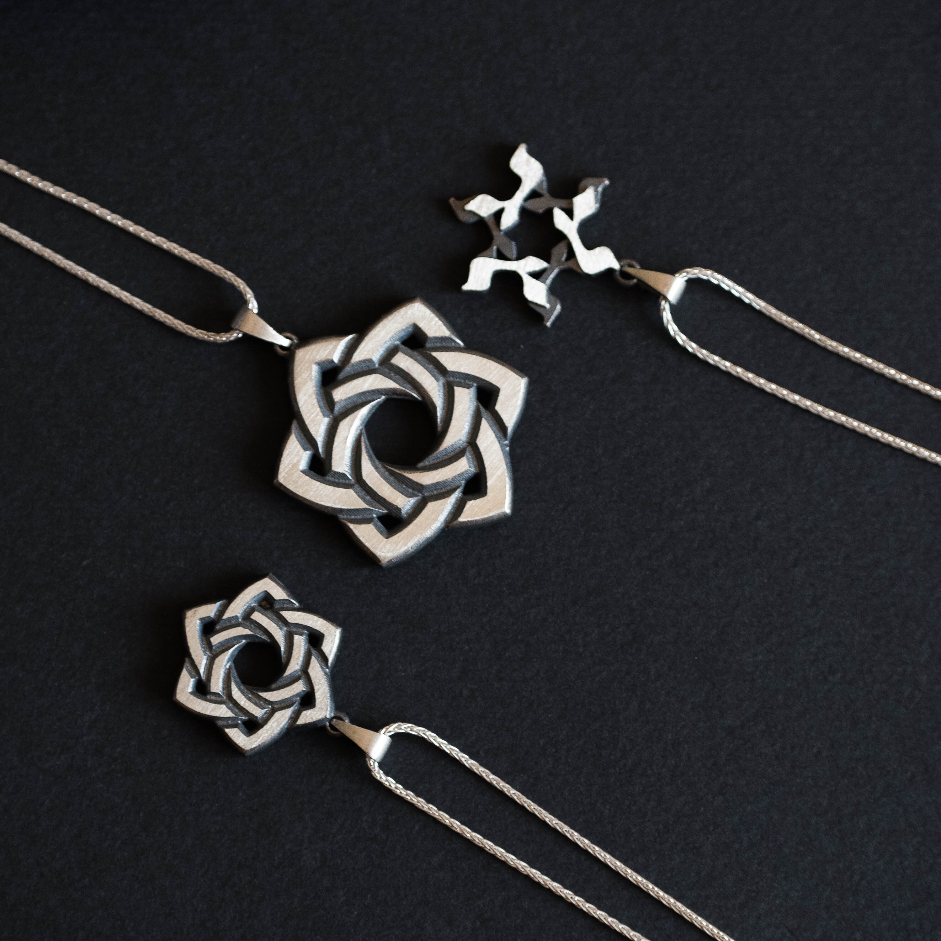 This pendant is made of Sterling Silver and partly blackened with special patina.