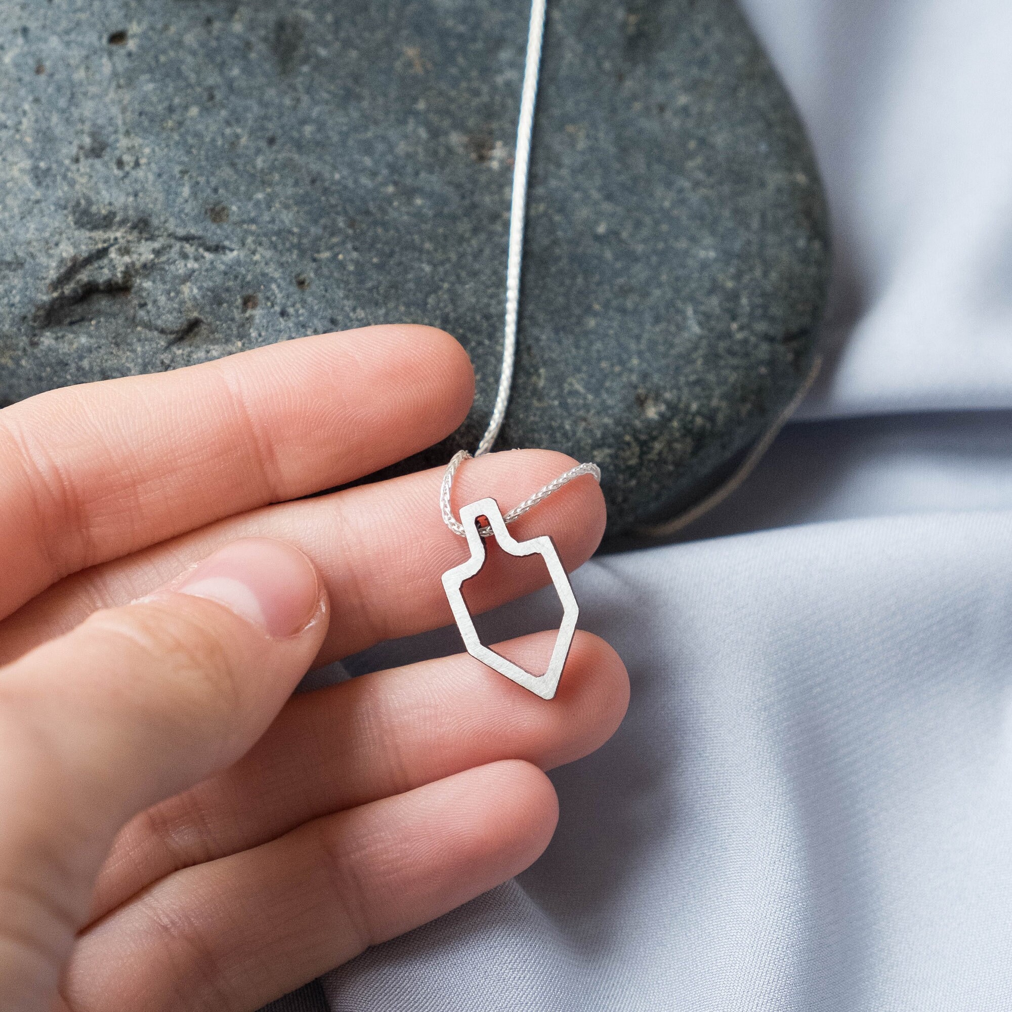 Dreidel pendant Channukah sevivon Silver jewish necklace Bat Hanukkah gift Silver amulet Lucky charm Spinning top Israel pendant Bottle