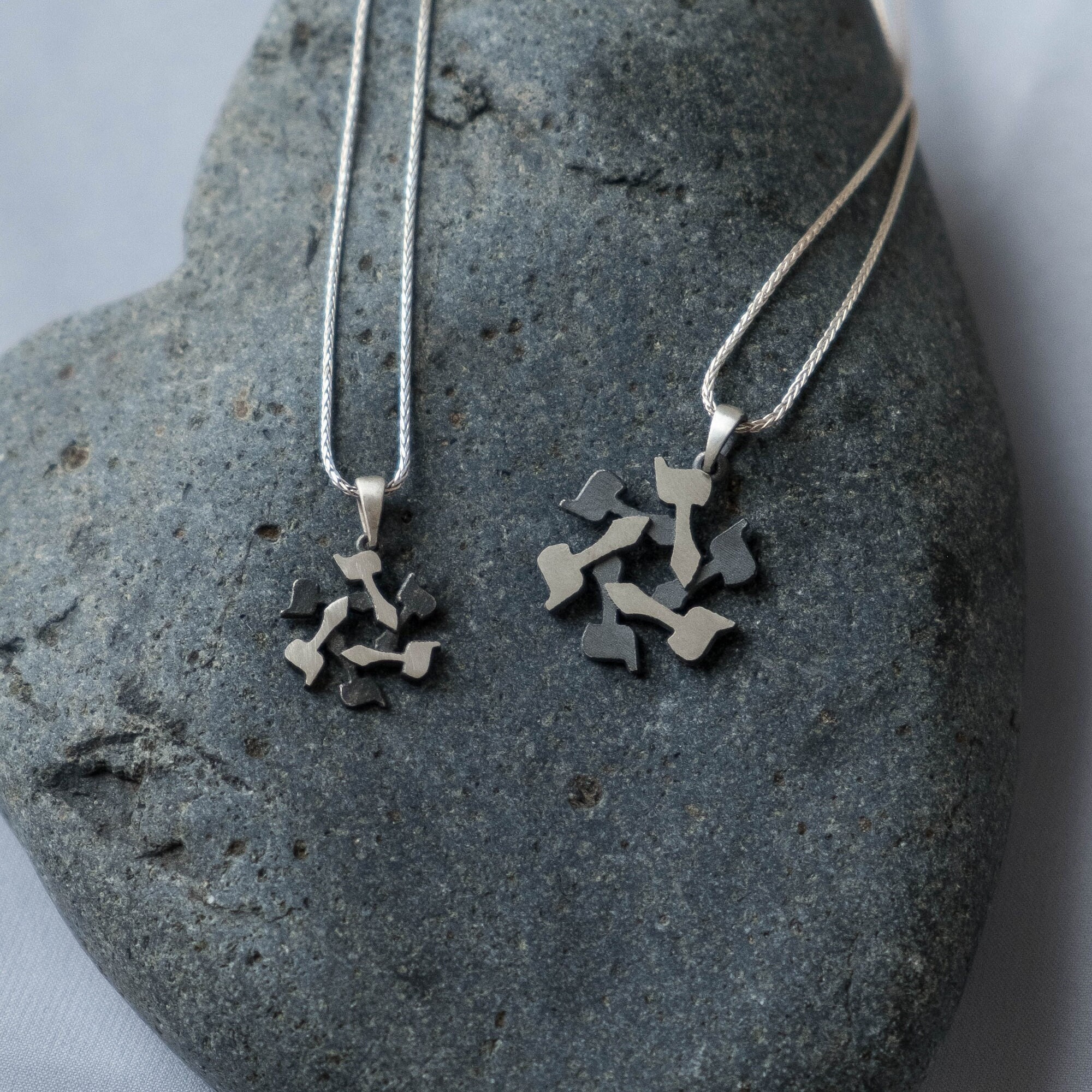 Material: 925 sterling silver, partially oxidized with a special patina.