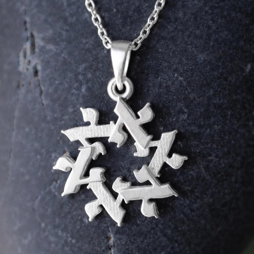 However, this design can be made with any Hebrew letter — each letter has its own custom composition within this circular Star of David form.