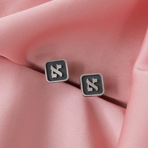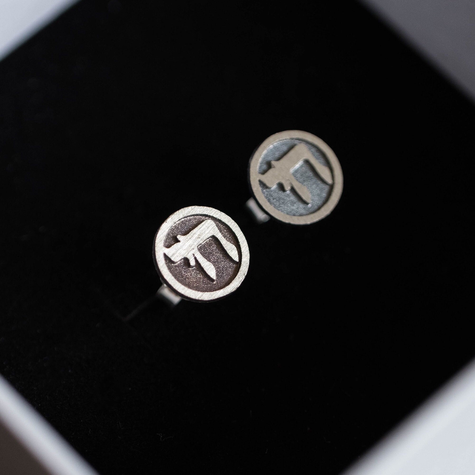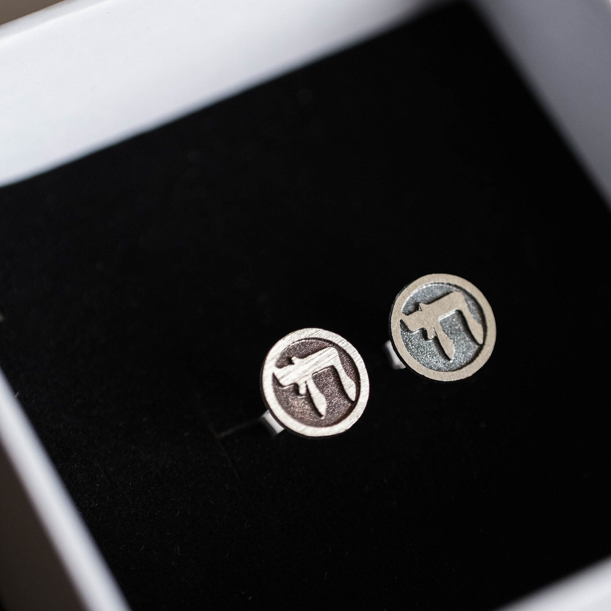 Each pair is handcrafted from solid 925 sterling silver and finished with a special black patina, creating a strong contrast that highlights the Hebrew letters.