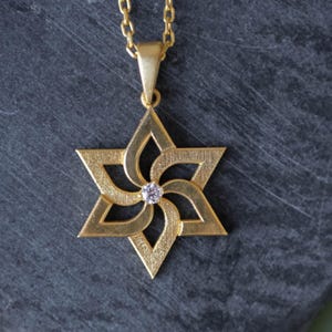 14K gold star of David Kinetic pendant Moving fidget jewelry Modern magen david
